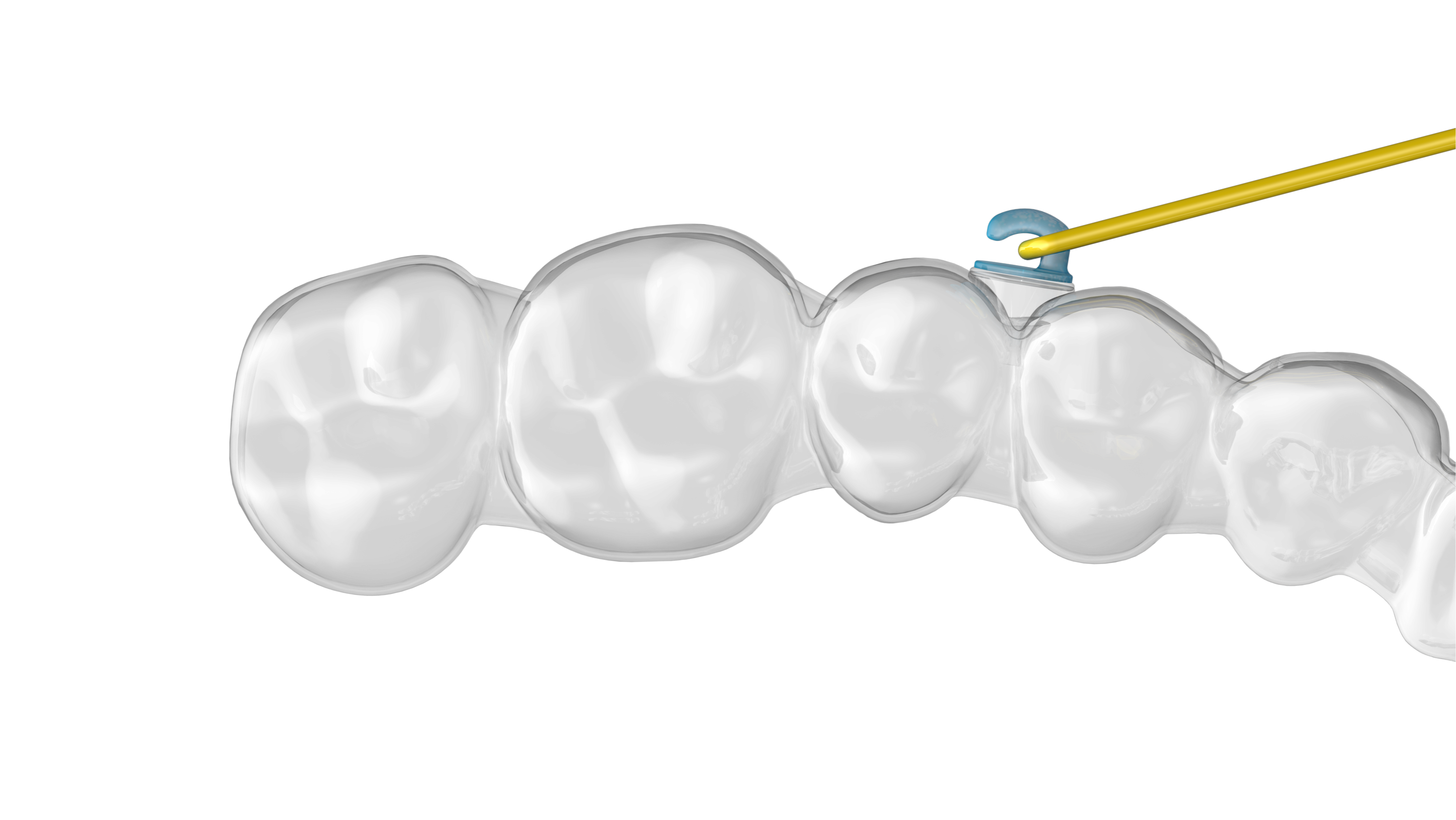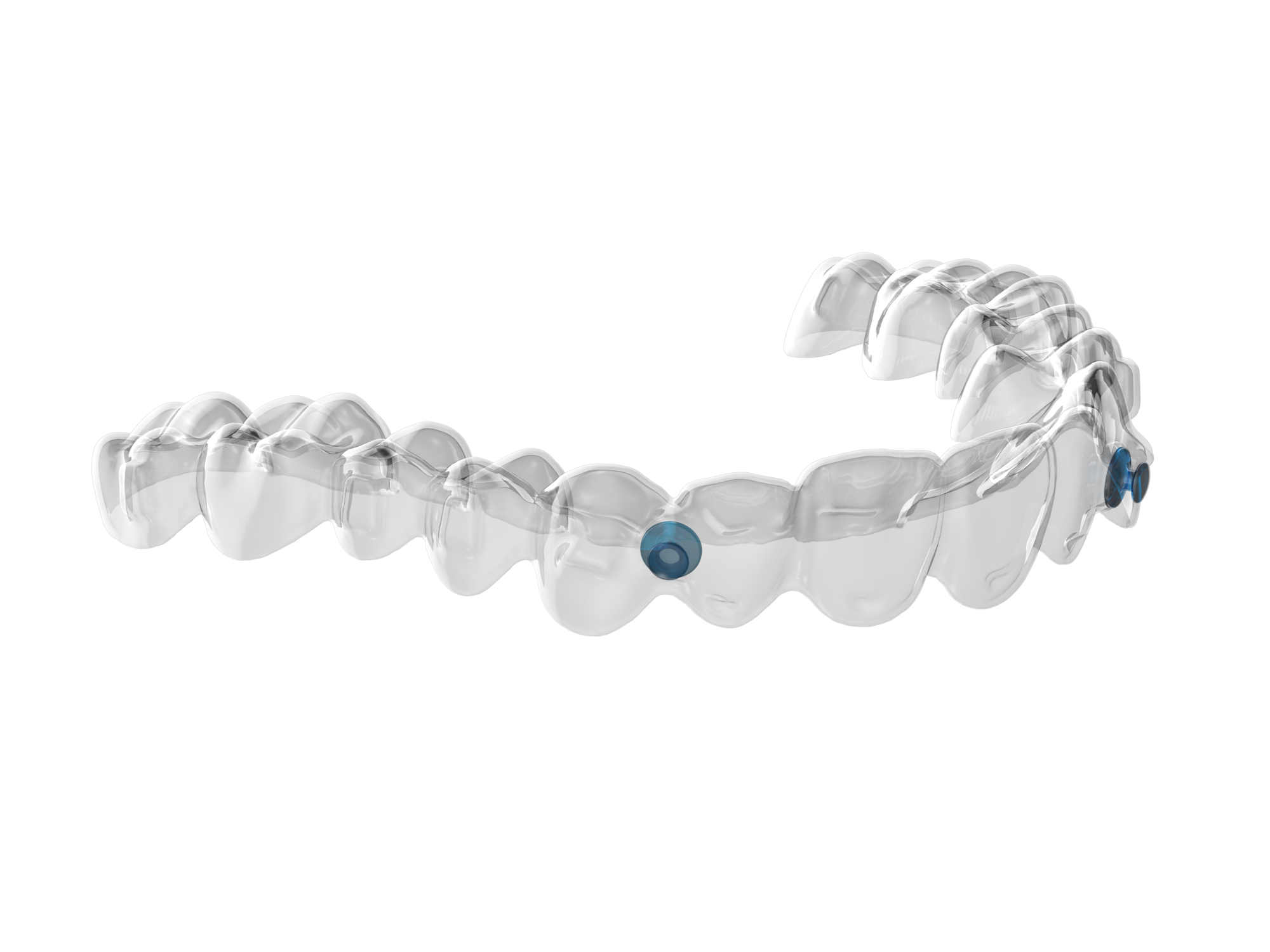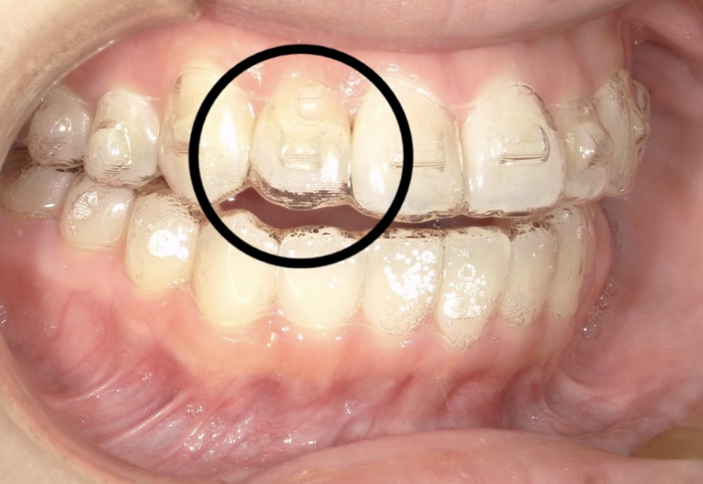アタッチメントやボタンと呼ばれる「突起」を歯に付ける必要があります。歯に何らかの補助装置を付けることで歯を移動させていくのです。