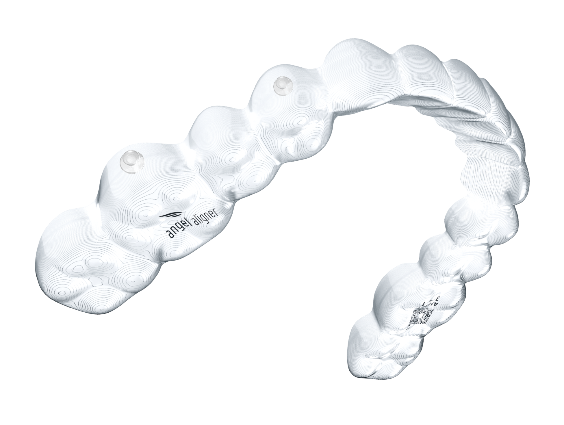 従来はせっかく透明のマウスピースでも歯に補助装置を付ける必要がありましたが、エンジェルアライナーはマウスピースに組み込まれているため、歯に付ける必要がなく、目立ちません。矯正中に補助装置が外れて付け直しのために歯医者へ通う必要もなくなりました。